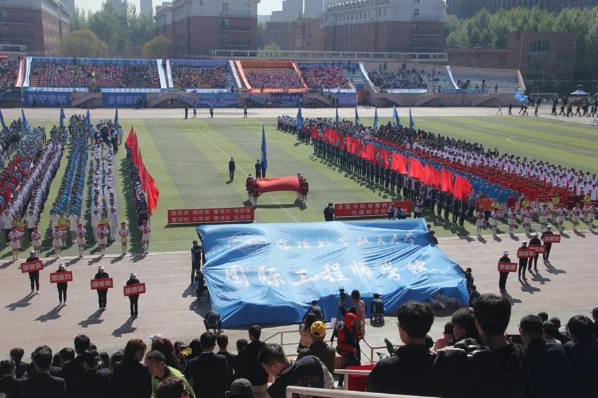 慷慨激昂的音乐、迎风飘动的彩旗、宣传标语和各方阵队响彻的口号,将会场气氛推至高潮。全校师生欢聚一堂,以饱满的激情、昂扬的斗志、勇于拼搏的信念、团结向上的精神投入到运动会中,大家在运动场上尽享体育运动带来的快乐,彰显了沈航人的时代风采和精神风貌。