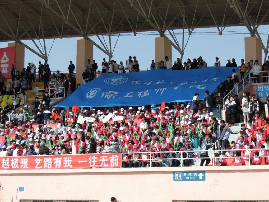 赛场上的国工学子一个个精神抖擞,为运动会做好了充足准备,蓝天白云,微风轻轻,观众席上的国工学子,绘出“国工”、“五四”、“加油”等字样,国工学子们迎春启程,向阳而行,荣获“优秀组织奖”称号。